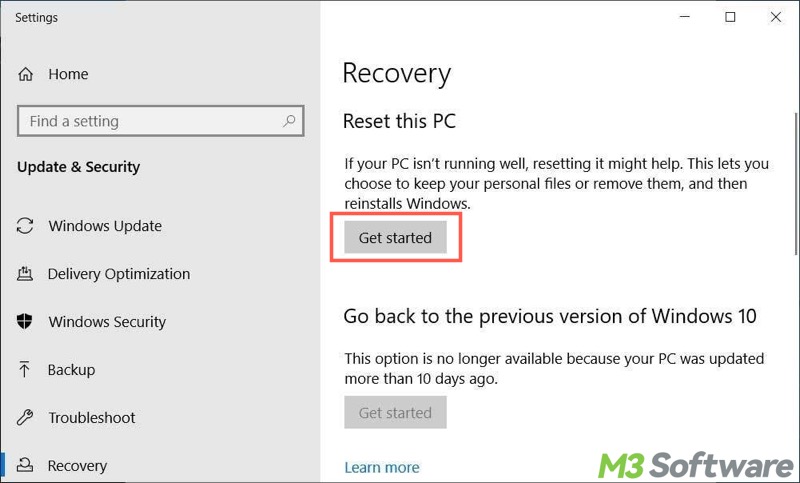Here's how to wipe C drive by resetting your PC (Taking Windows 10 as example):