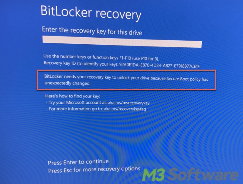 This post discusses the BitLocker recovery caused by Secure Boot: BitLocker needs your recovery key Secure Boot policy has unexpectedly changed.