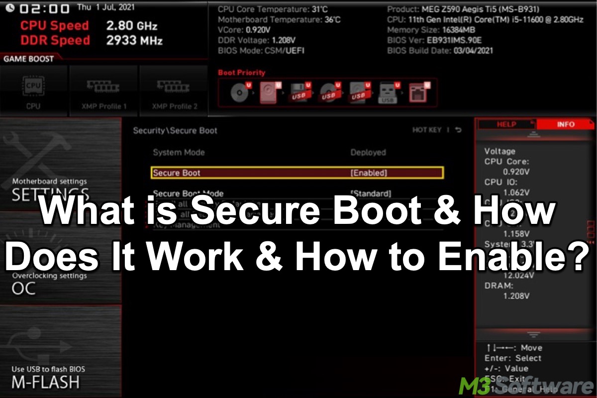 This post revolves around the Secure Boot feature on Windows OS, which explains what Secure Boot is, how it works, and how to enable Secure Boot on Windows 11.